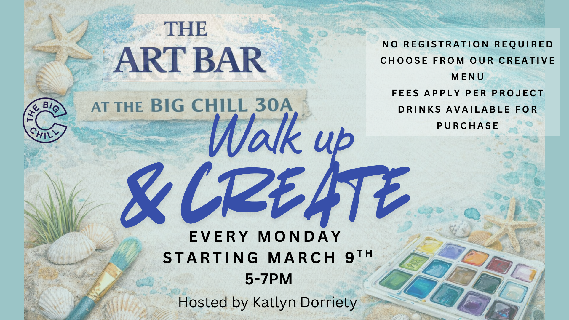 Uniquely Clever Art is hosting an Art Bar Menu Station at The Big Chill on Mondays! Guests will have several art options to select from and create. This will be located in the screened-in room just to the left of the jumbotron.